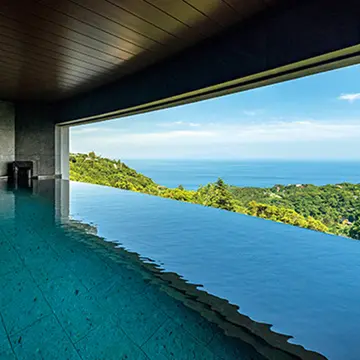 熱海の高台にあり、自然を満喫しながら一日1組限定で各々が望むかたちを実現する別荘スタイルのラグジュアリーリゾート。バトラーのサービスを受けながら、家族の団欒(だんらん)を楽しめる。LDK、テラスのほかに個室露天風呂もある大小4つの部屋があり、最大11名まで宿泊できる。