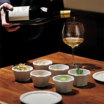 横浜中華街で修業を始め、六本木の名店や上海で、王道をがっちり学んだ田中達也シェフ。火の勢いと湯〈タン〉(スープ)で決める味作りはそのまま、油や塩気は控えめに、軽やかな味を作り出す。今ならサクラマスにそら豆と、季節の素材も満載だ。紹興酒はいっさい置かず、日本酒の熟成酒を推す提案もユニーク。聞けば、サービスの奥さまが経験豊かな日本酒のプロフェッショナル。古酒の酸化熟成のニュアンスは、中華の発酵調味料にもよく合い、新しい世界が開ける。