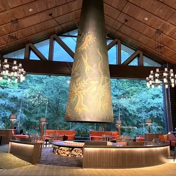 和食・フレンチのレストラン「白露」では、ディナー、ランチ、朝食ブッフェを提供。デザインコンセプトは、森の中の渓谷