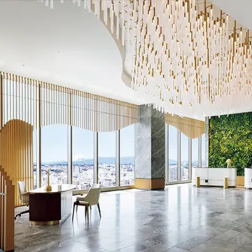 オープンエアのアプローチから2階のパブリックスペースやレストランへ自然と建築をつなぐ