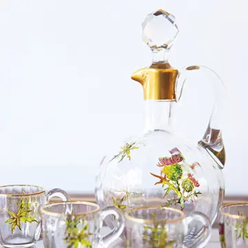 建てられた当時の床のタイルを残した空間にも、すっとなじむアンティーク。テーブルウエアはフランスやイギリスのものが中心