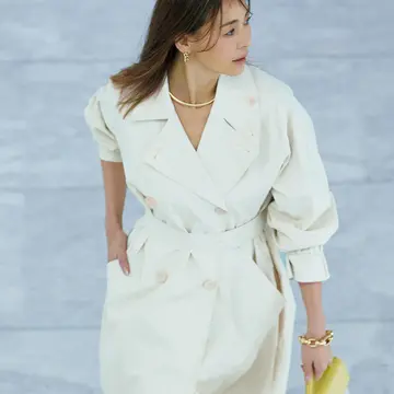 グレーのジャケットは、いつの時代も働くシーンにおいて頼れる存在。オーバーサイズでモダンに仕上げながらも、ヴァージンウールとシルク混紡のしなやかな素材で、“いつものグレー”とは一線を画す優美さも兼ね備える。袖を通すことでさらに端正な印象になり、長めの袖はスリット入りで、折り返してアレンジを効かせることも。あえてマキシ丈のタイトスカートと合わせて、自分らしい着こなしで楽しみたい。
