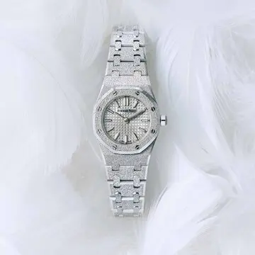 「海外で身につけていると『それはどちらの?』と必ずといっていいほど聞かれます。会話のきっかけにもなる日本が誇るラグジュアリーな時計は、海外出張に欠かせません」。ネイビーのフェイスとベルトが、甘やかな白いブラウスに凛と映える。