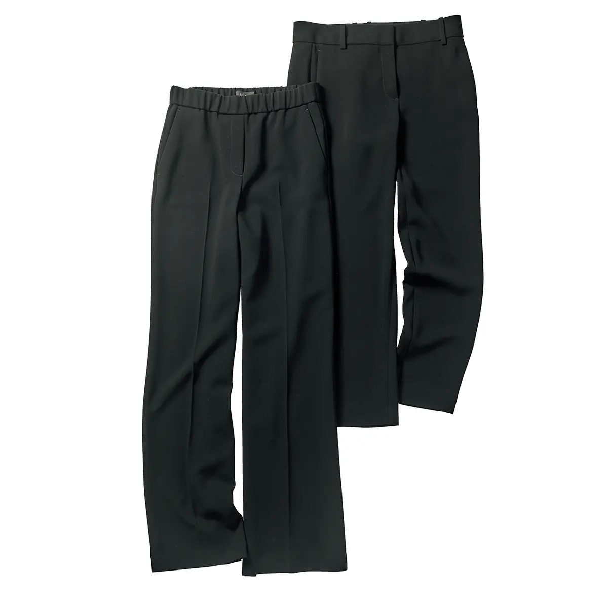 右はつかず離れずのフィット感のストレッチパンツ、左はセンタープレス入りワイド。パンツ(右)¥26,000・(左)¥29,000/リンク・セオリー・ジャパン(セオリー)