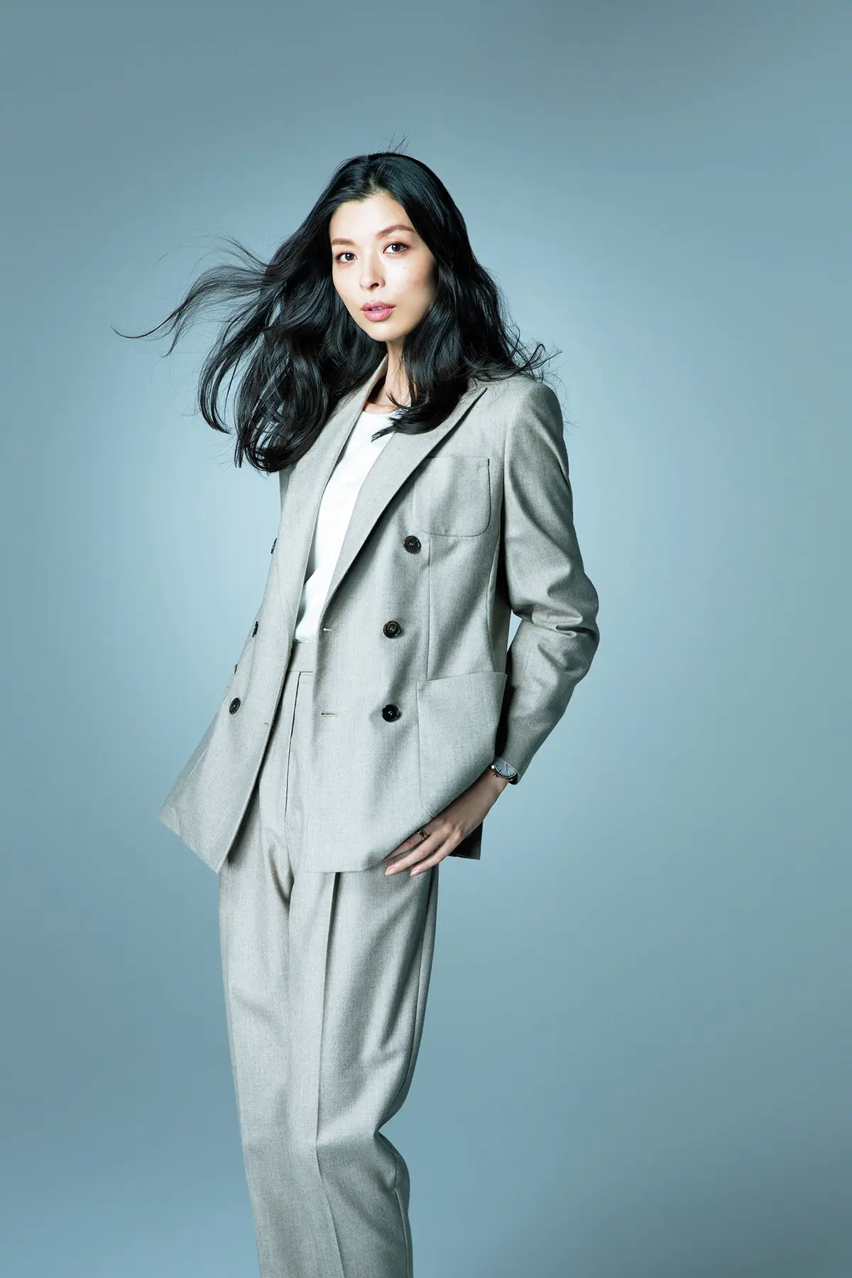 ジャケット¥388,000・ノースリーブブラウス¥67,000・パンツ¥136,000/マックスマーラ ジャパン(マックスマーラ) 時計¥1,380,000/オメガお客様センター(オメガ) リング¥409,000/ブシュロン カスタマーサービス(ブシュロン) -