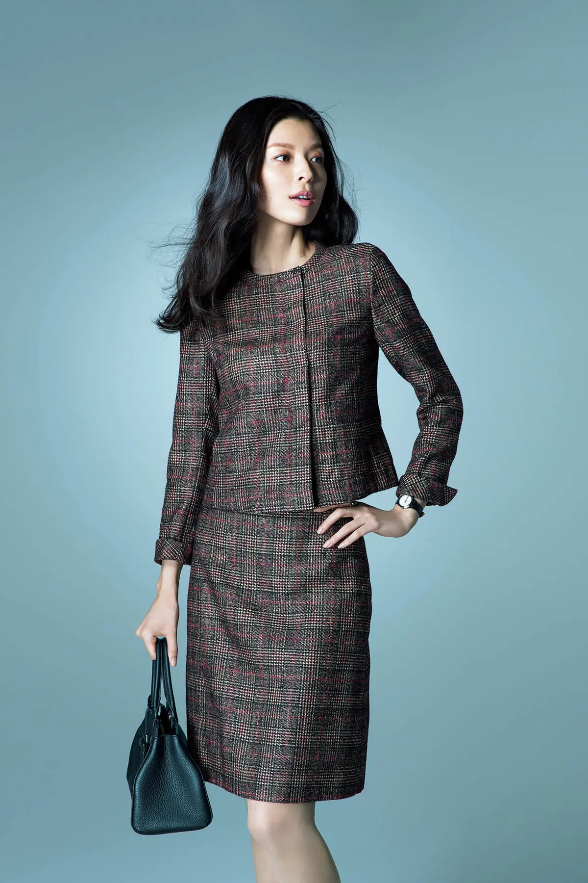 ジャケット¥379,000・スカート¥126,000/アクリスジャパン(アクリス) リング¥275,000(M/G TASAKI)・時計¥500,000(TASAKI TIMEPIECES)/以上TASAKI バッグ¥429,000/モワナ メゾン GINZA SIX(モワナ) -