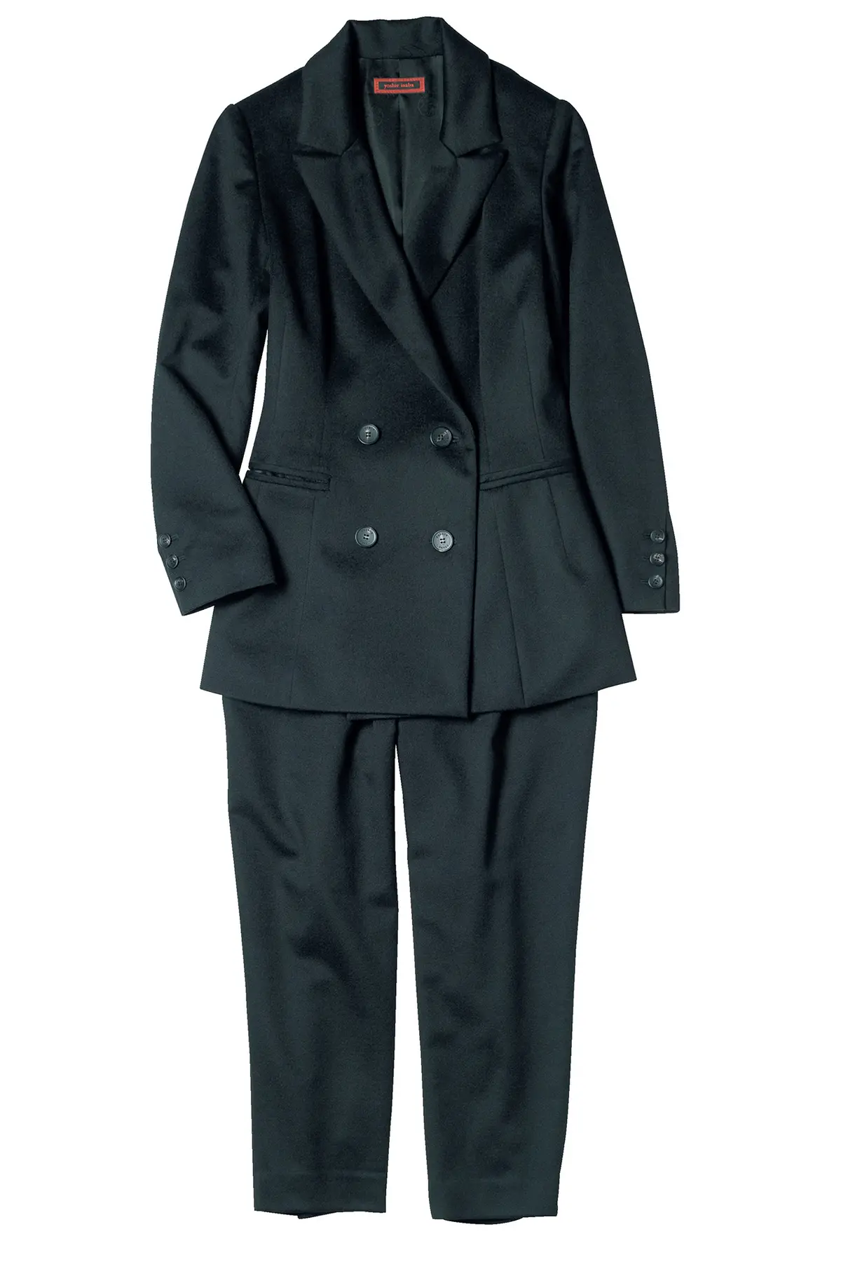 上質さが香りたつ、 カシミヤの極上ハンサムスーツ 上質素材でていねいに仕立てられた、マックスマーラのジャケットコレクション「プロジェット・タイユール・サルトリアーレ」の新作。マニッシュなダブルブレストジャケットもカシミヤのソフトな素材感で、さりげなくフェミニンさが漂う。ボトムはテーパードシルエットのアンクル丈パンツ。