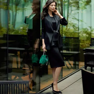 知的にスタイリッシュに決めたい日もあるエグゼクティブウーマンにこそおすすめしたいブラックドレスと同素材のジャケット。まとうだけで贅沢に映える、ジャガード織りを施した一品をご紹介。