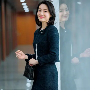 ジャケット¥279,000・ブラウス¥135,000・スカート¥115,000/三喜商事(アニオナ) ピアス¥168,000・リング¥246,000/TASAKI バッグ¥549,000/モワナ メゾン GINZA SIX(モワナ)