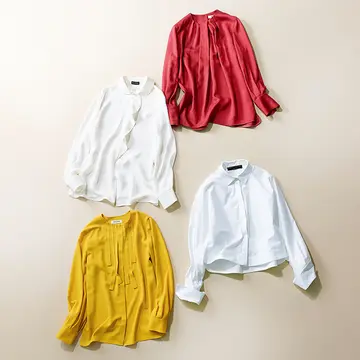 自宅ではTシャツで過ごすことも多いこの時季、パールネックレスがひとつあれば、急なリモート会議も慌てずにすむ。1連の場合、エクラ世代はやや大粒な約8㎜サイズを選ぶと、顔まわりが明るくなり、存在感も出せてベスト。ネックレス(SV×アコヤ真珠)¥620,000/TASAKI Tシャツ¥9,000/サンスペル 表参道店(サンスペル)