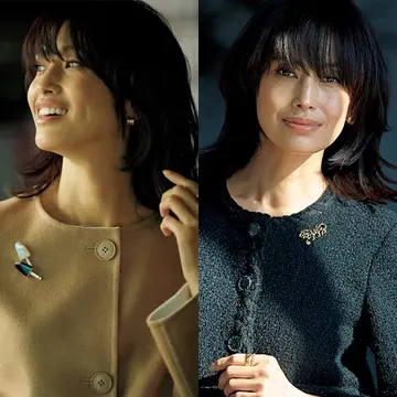 ブローチ(YG×あこや真珠)¥390,000・イヤリング¥185,000・リング¥912,000(すべて’21年1月19日までの価格)/TASAKI コート¥440,000・ワンピース¥275,000・バッグ¥240,000/アクリスジャパン(アクリス)