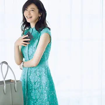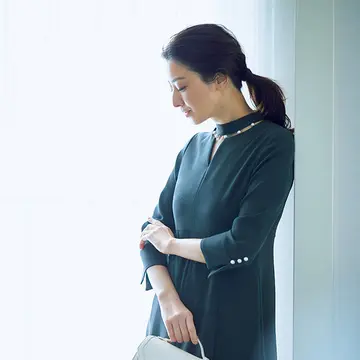 ワンピース¥95,700/J&M デヴィッドソン 青山店(J&M デヴィッドソン) ジャケット¥69,300/トヨダトレーディング プレスルーム(チルコロ 1901) リング(人さし指)¥184,800・(薬指)¥159,500/リーフェ ジュエリー バッグ¥42,900/グルッポタナカ(リビアナ コンティ) 靴¥68,200/ピエール アルディ 東京(ピエール アルディ)