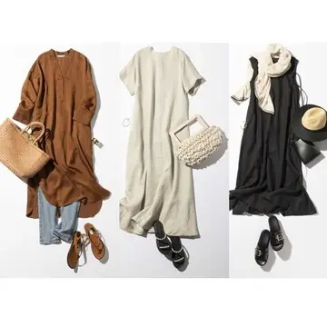 出張帰りに休暇を。ネックラインとヒップ下にたっぷりと寄せたギャザーがふんわりシルエットをつくる、リラックスフェミニンなマキシ丈ワンピース。水着の上からもさっとはおれるので、ビーチのあるリゾートホテルへの旅にもおすすめ。
