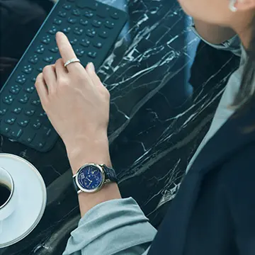 2015年にデビューし、不動の人気を誇るアイコンウォッチとなった「ボーイフレンド」。シャネル独自の素材であるベージュゴールドは肌なじみがよく控えめな美しさがあり、働く女性たちにふさわしい洗練された手もとを演出してくれる。オパールホワイトの文字盤とツイード調に仕上げたブレスレットの組み合わせもこのうえなく上品。