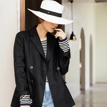 デニム¥39,600/シチズンズ・オブ・ヒューマニティ(エー・ゴールド・イー) ジャケット¥88,000・チョーカー¥17,600・ピアス¥31,900/ボウルズ(ハイク) ニット¥30,800/エストネーション(コラム) ハット¥79,200/エントワフェイン バッグ¥379,500/ジミー チュウ 靴¥59,400/アマン(ペリーコ)