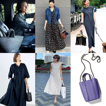 ドレス¥272,800・ピアス¥105,600・ネックレス¥379,500・バッグ¥206,800/ジルサンダージャパン(ジル サンダー バイ ルーシー アンド ルーク・メイヤー)