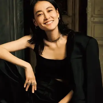 イヤリング「ローズ ド ノエル」(YG×D×オニキス)¥3,762,000/ヴァン クリーフ&アーペル ル デスク(ヴァン クリーフ&アーペル) ベスト¥207,900・シャツ¥163,900・パンツ¥207,900/ザ・ロウ・ジャパン(ザ・ロウ)