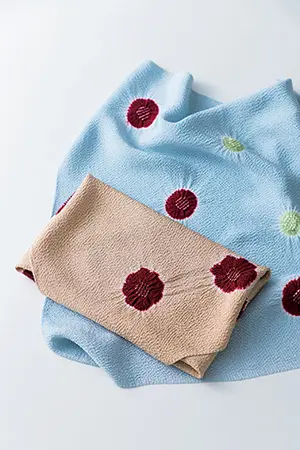飛び絞りの風呂敷や帯揚げでおなじみ、芸舞妓さん御用達の呉服店。「世界中どこを探してもない、はんなりとした色合いと絞りの質感が好き。ご主人が小座敷に、色とりどりの風呂敷ばーっと広げられる瞬間は”これぞ京都の買い物”の醍醐味と高揚感に包まれます」(編集部W)。菊飛び絞り¥12,000、水玉2 色飛び絞り¥14,000