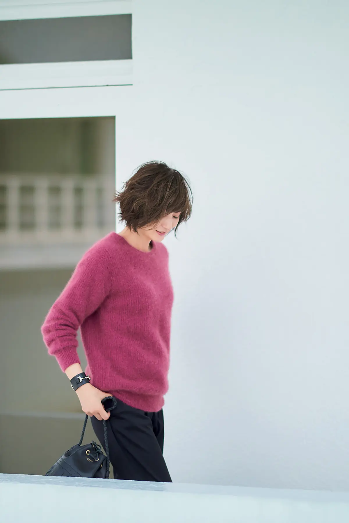 eclat11月号 撮影/渡辺謙太郎 ヘア/左右田実樹 メイク/小森由貴 スタイリスト/村山佳世子 モデル/富岡佳子 取材・文/坪田あさみ 撮影協力/バックグラウンズファクトリー