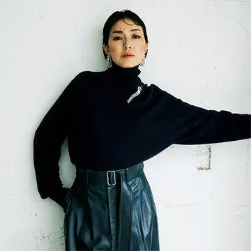 リング(すべてYG×D)「レター ドゥ ルミエール」¥1,760,000/チェリッシュ インク(ソフィ ビル ブラーエ)※すべて店舗限定 フーディニット¥115,500・首に巻いたクルーネックニット¥198,000/ピセア