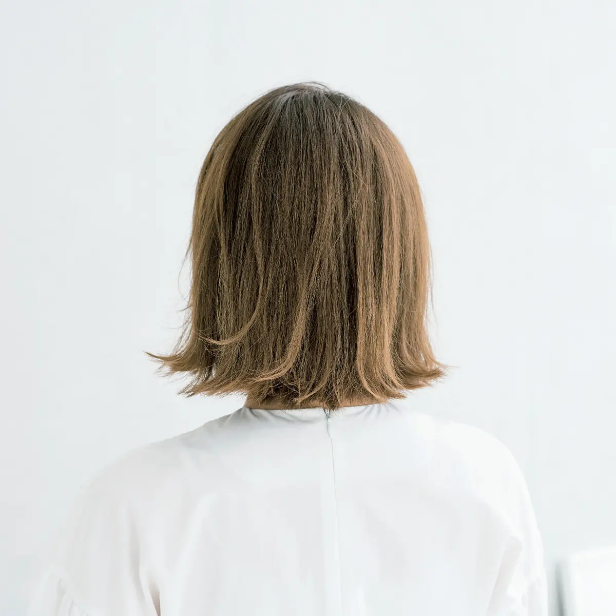 「パツンと切っただけのボブは、欲しいトップにボリュームが出にくく、いらないところにボリュームが出てしまいます。そこで、内側にだけ細かいグラデーションを入れると軽やかに動き、必要な場所に必要なボリュームが生まれてきます。内側は軽くしても厚みが出るので、毛量はむしろ多く見えるんですよ。仕上げに毛先パーマやアイロンで外ハネにすると今どきの抜け感に」