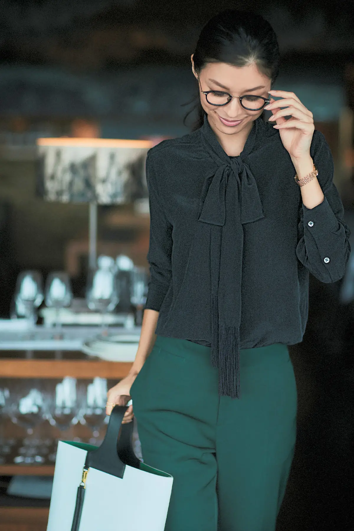 会議の席ほどまじめすぎず、パーティのように飾らなくていい、実はそのさじかげんがむずかしいビジネスでの会食ファッション。今回は、一枚で簡単に華やかさを演出できるブラウスに的を絞って、会食にふさわしい選び方のポイントなどを含めてご紹介。