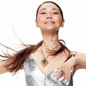 ヴァン クリーフ&アーペルの「ブトン ドール」を、世界のプリンシパル・上野水香さんがつけこなす。オニキスの深いブラックと、クリソプレーズのフレッシュなグリーンが優雅な印象。