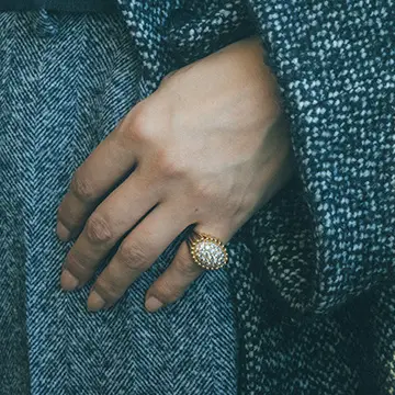 つける指や重ね方しだいで、見慣れた定番リングのイメージも大きく変わるもの。ヴァン クリーフ&アーペル、ブシュロン、ピアジェのアイコニックリングは、指を変えて楽しんでみたい。スタイリスト伊藤美佐季さんが提案。