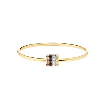 〈左〉「キャトル クラシック 1モチーフ バングル ラージ」(YG×PG×WG×D×ブラウンPVD)¥1,161,600(予定価格)・〈右〉「キャトル クラシック トゥーフィンガー リング」(YG×PG×WG×D×ブラウンPVD)¥1,597,200(予定価格)/ブシュロン クライアントサービス(ブシュロン)