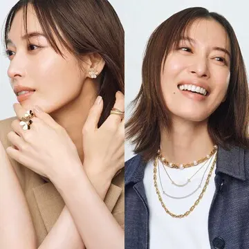 そんな板谷さんがこの秋冬ぜひトライしたいと考えているのが、ニットとジュエリーのカラーコーディネート。今回は、ニットの色にさりげなく合わせたカラーストーンを1カ所に集中させてレイヤード。つけたジュエリーはすべてポメラートのカラーストーンで、どれもツヤ感が秀逸。石の色を最大限に美しく見せるカットやデザインは唯一無二だ。「まるでみずみずしい旬のフルーツみたいで、テンションが上がります」。その存在は、年齢を重ねハリや水分が減ってくる大人の手もとを、パッと明るく若返らせてくれるのもうれしいところ。身につければ優しく幸せな気持ちになれるはずだ。