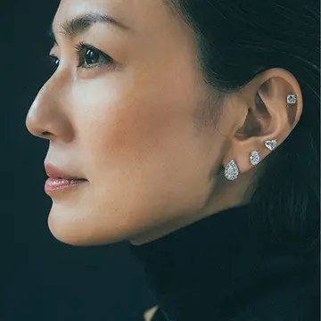 極上のダイヤモンドピアスが印象づける美しきプロフィール