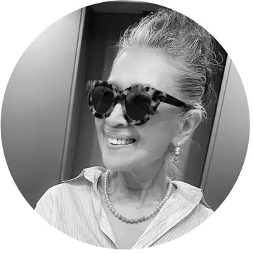 主人のクライアントがいる香港では、アートフェアや懇意にしているギャラリーの展覧会など、彼の亡きあとも華やかな場にお招きいただく機会が続いています。前夜祭のヴェルニサージュやガラディナーはまばゆいほどの華やかさ。作品を引き立てつつ、おしゃれを楽しめる特別な場ですので、私も喜びの席にふさわしい装いで臨みます。美しいシルエットや大胆なカッティングも、香港の空気の中なら自然に溶け込み、自信をもって楽しめます。喜ばれるのはやはりおきもの。繊細にきらめく銀箔の訪問着を白で引き立て、お祝いの席の装いに。一方のランチミーティングには、黒のパンツスーツで、凛々しくもどこか女性らしい着こなしを心がけます。