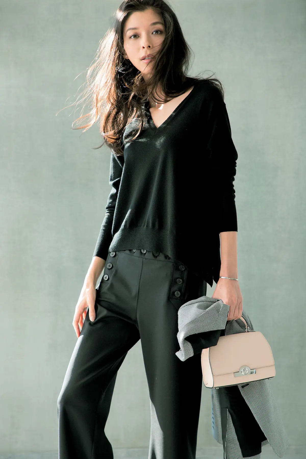 どんな着こなしにも合わせやすい黒ニットは「名脇役」としてしっかり選びたい。出すぎない存在感をキープしつつ旬の香りが漂う一枚をぜひ、新調して!