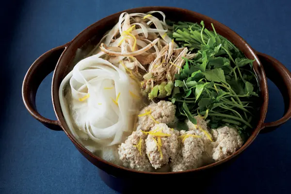 ❸鍋にAを入れて中火にかけ、煮立ったら①を加えてひと煮立ちさせる。アクをとって5分ほど煮て、ナンプラーと②を加え、白菜がしんなりするまでさらに5分煮る。