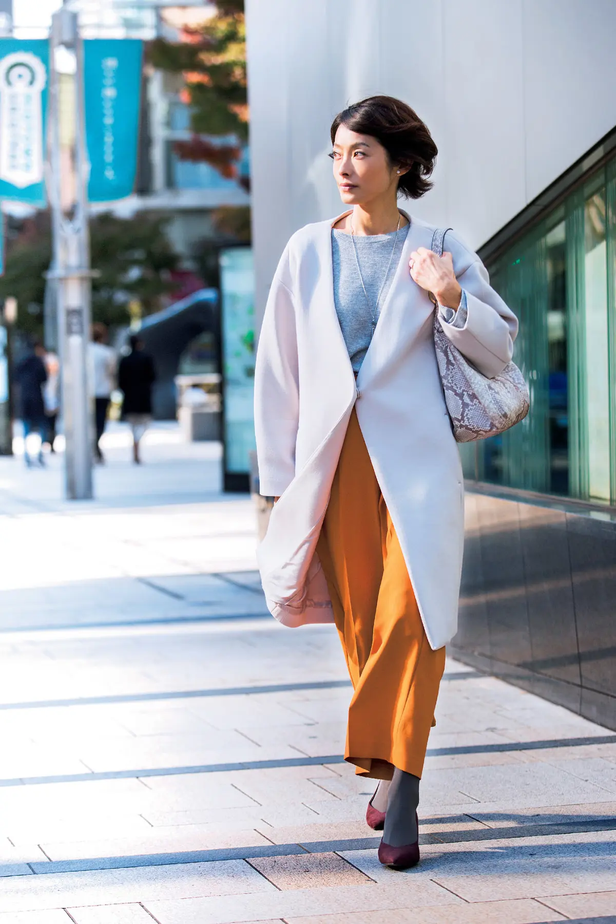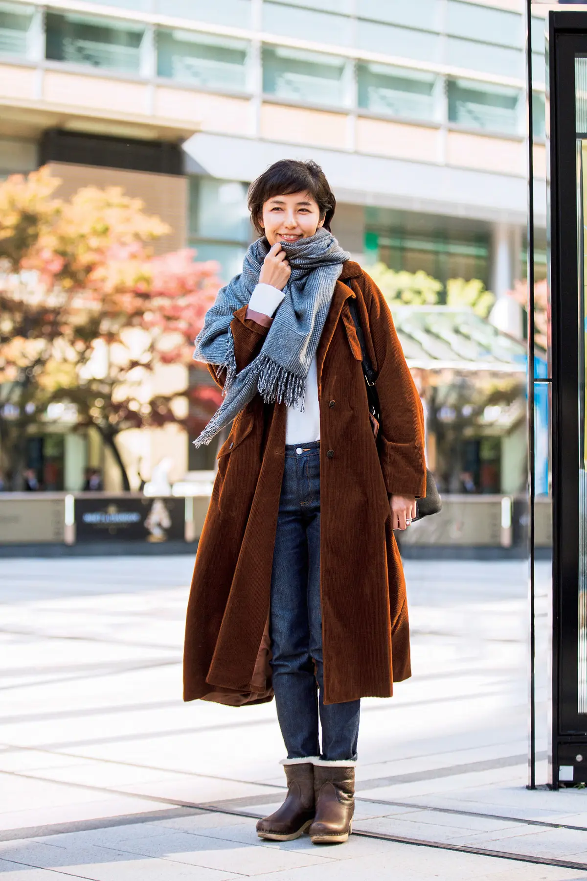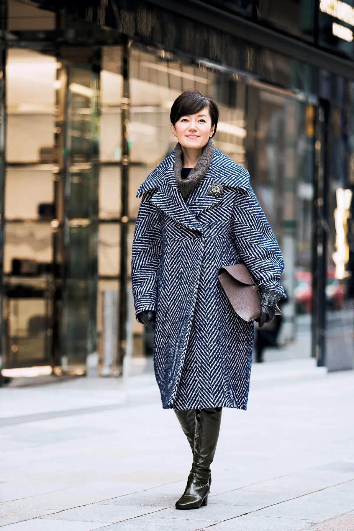 éclatラグジュアリー エクラが"Jマダム"を応援して丸2年。恒例のスナップ企画では、素敵なジャパンマダムを求めて編集部が東京の街へ飛び出しました。流行と上手に付き合いながら、おしゃれに前向きな素敵な人たちの着こなしをたっぷりとご紹介! 1.樺澤貴子さん(ギフトプロデューサー) @ギンザ シックス前銀座での打ち合わせ帰りという樺澤さん。「今シーズンのお気に入りコートに、ウエディングドレスをとめるクリップタイプのヴィンテージブローチを添えて"今と昔"を溶け込ませる着こなしを意識しました」。印象的なビッグヘリンボーンに大きな襟と、クチュール感のあるコクーンシルエットも、どことなくクラシカルなコート。ショートカットに丸みのあるシルエットで優しい印象に。コート/サポートサーフェス ブローチ/ルカ バッグ/誂え鞄otohaci ブーツ/ドリス・ヴァン・ノッテン 2.小泉恵里さん(ファッションエディター) @六本木 東京ミッドタウン前存在感のあるコーデュロイのコートをさっそうと着こなす小泉さん。「ボリュームのあるロング丈なので軽やかに着たくて。ワイドパンツ全盛ですが、身長があるので迫力が出すぎないように白いニットと細身のデニムでシンプルにまとめました」。冬の撮影に欠かせない木底のムートンブーツがコートとさりげなくリンク。コート/ミュラー オブ ヨシオクボ ニット/ハイク デニム/A.P.C. ストール/ジョンストンズ ブーツ/No.6 3.鈴木利恵さん(パート勤務) @六本木メトロ出口「エクラの特集で見た濃密色が着てみたくて購入したテラコッタのパンツ。ベーシックカラーのパンツばかりはいていたので、1点投入するだけでハッとするほど新鮮でした」。ほかのアイテムには色を加えず、オフホワイトのコートとライトグレーのニットでパンツを引き立てる着こなしを。コート/アイボリーコート ニット/バナナリパブリック パンツ/エディスト バッグ/マイケル・コース 靴/H&M 4.石田敦子さん(テレビ局報道部勤務) @六本木 東京ミッドタウン前「着心地はラクちん&リラックス、見え方はきちんと、が今日のポイント。ダークカラーのコートもいいけれど、生成りのコートをベースにした優しい色のグラデーションが今の気分」。メンズライクなチェスターコートと資料がたっぷり入った大きなレザーバッグで、これから仕事場へ。コート/シクラス ニット・パンツ/ザ シークレットクロゼット バッグ/サンローラン 靴/ニコラス カークウッド 5.髙木めぐみさん(会社員) @伊勢丹新宿店前ヴィンテージを取り入れたスタイルのある着こなしが目をひく髙木さん。「ミンクのコートは祖母のきもの用。ボリュームがあるのでインは黒のカシミヤニットとデニムですっきりまとめます。全身ヴィンテージだとイタい感じになってしまうので、キレのあるハイブランドブーツを合わせました」。コート・バッグ/ヴィンテージ ニット/バトナー パンツ/ユニクロ バングル/コン リトゥモ リング/byoka ブーツ/セリーヌ eclat2月号掲載 撮影/大瀬智和 取材・文/向井真樹 magazine magazine 2026年2.3月号 最新号試し読み 定期購読 デジタル版 購入 shopping shopping エクラプレミアム通販 売れ筋ランキング エクラ掲載品 エクラ限定アイテム イーバイエクラ follow us #スナップ #eclat五選