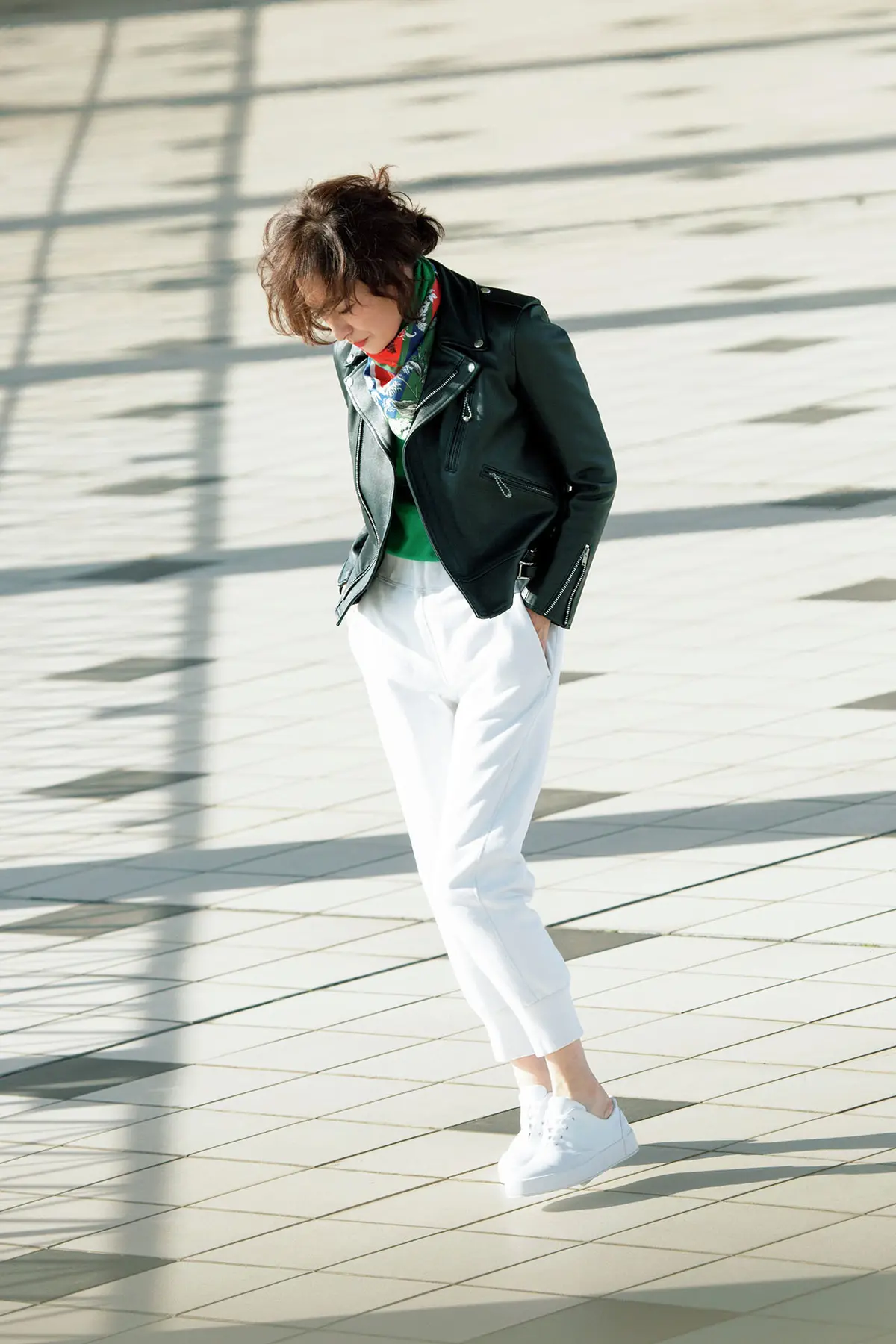 女らしさとリッチ感を備えたカジュアルスタイルが大人気の亜希さん。なかでも最近、ライダースジャケットを使ったコーディネートがとびきり素敵と、編集部やスタッフ間でも話題に。そこでこの春のトレンドアイテムでもあるライダースを、亜希さんの視点からクローズアップ。亜希さん本人の実感で選んだ、エクラ世代におすすめの黒ライダースを、スカートとパンツの計4パターンで着回し。ハードになりすぎない着こなしのコツを伝授します!
