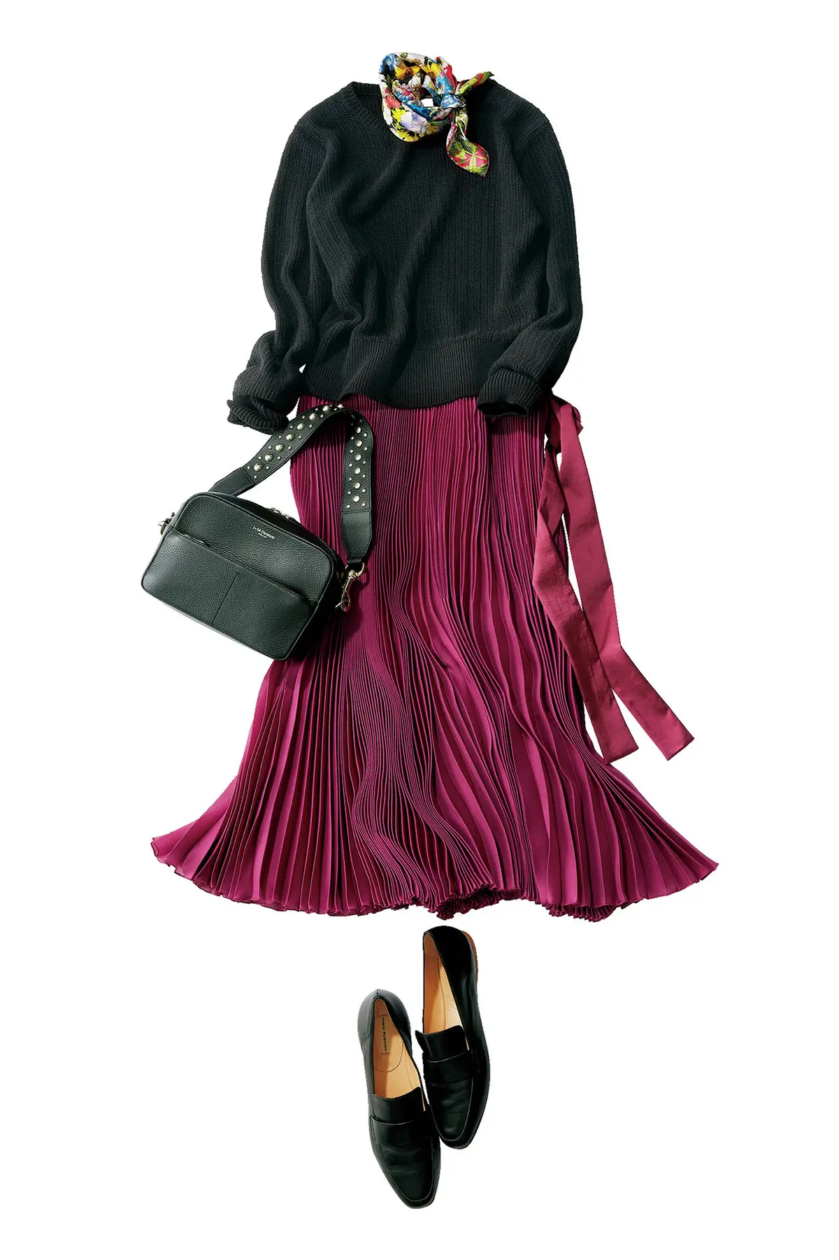長めのスカートならではの女性らしさや華やかさに、あえて足もとはフラット靴で意外性を足すのが正解! 大人カジュアルを新鮮にブラッシュアップしてくれる、旬のコーディネートをお届け。春も引き続き大人気のアコーディオンプリーツや、丸みを帯びた体のラインを美しく見せてくれるタイトスカートにご注目!