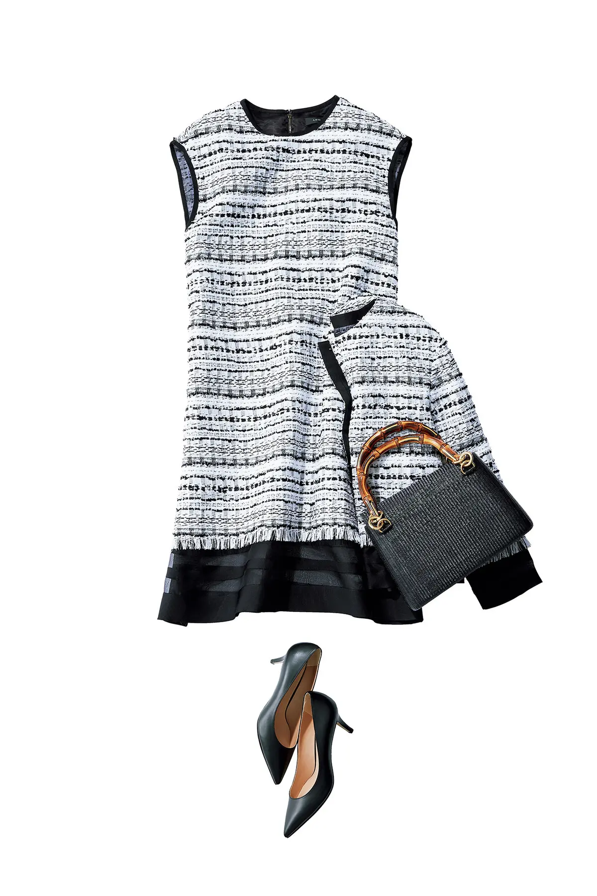 今季の豊富なバリエーションから選んだのは、長めの着丈と品のよさにこだわった、大人仕様。ビジネスシーンやラグジュアリーさを高めたい日にぴったりの、きちんと見えワンピースをシーン別でお届け。
