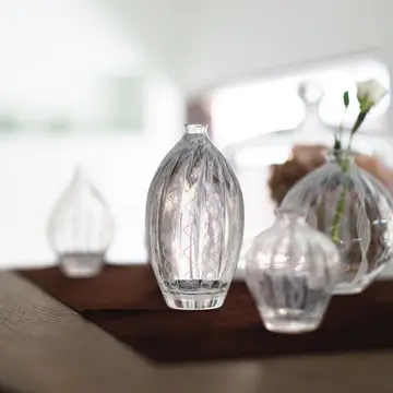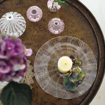 レース模様のお皿¥20,000、一輪挿し¥10,000~。レース模様や柄ゆき、色違いなどはオーダーで対応してくれる