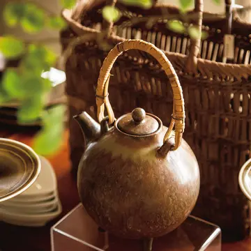 東京から京都・御所東にある築100年を超えるお屋敷に移転し、昨年11月にオープンしたギャラリー&ティールーム。かつて京都の自宅に予約制のギャラリーを始めたオーナーのエルマー・ヴァインマイヤーさんが、東京・富ヶ谷に移転し、再び京都に戻り始まった。今は奥さまの奥村文絵さんがエルマーさんのポリシーを受け継ぎ、常時30名ほどのつくり手のものを扱っている。いずれも使い勝手がよく、職人の手仕事が感じられるもの、時間をかけて成熟した、むだな装飾がなく美しいものをそろえ、「良質なものをつくり続けている工房や作家たちと時間をかけ、信頼関係をつくりながらものを手に入れてきました」と奥村さん。店頭に並ぶ作品は限られているが、欲しいものを伝えれば、奥からいろいろなものが運ばれ、つくり手の思いを伝えながら見せてくれる。