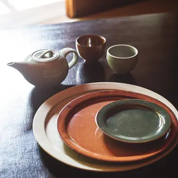(右から)王地焼膾¥15,800、一輪挿し¥19,800、チークディナープレート¥6,500