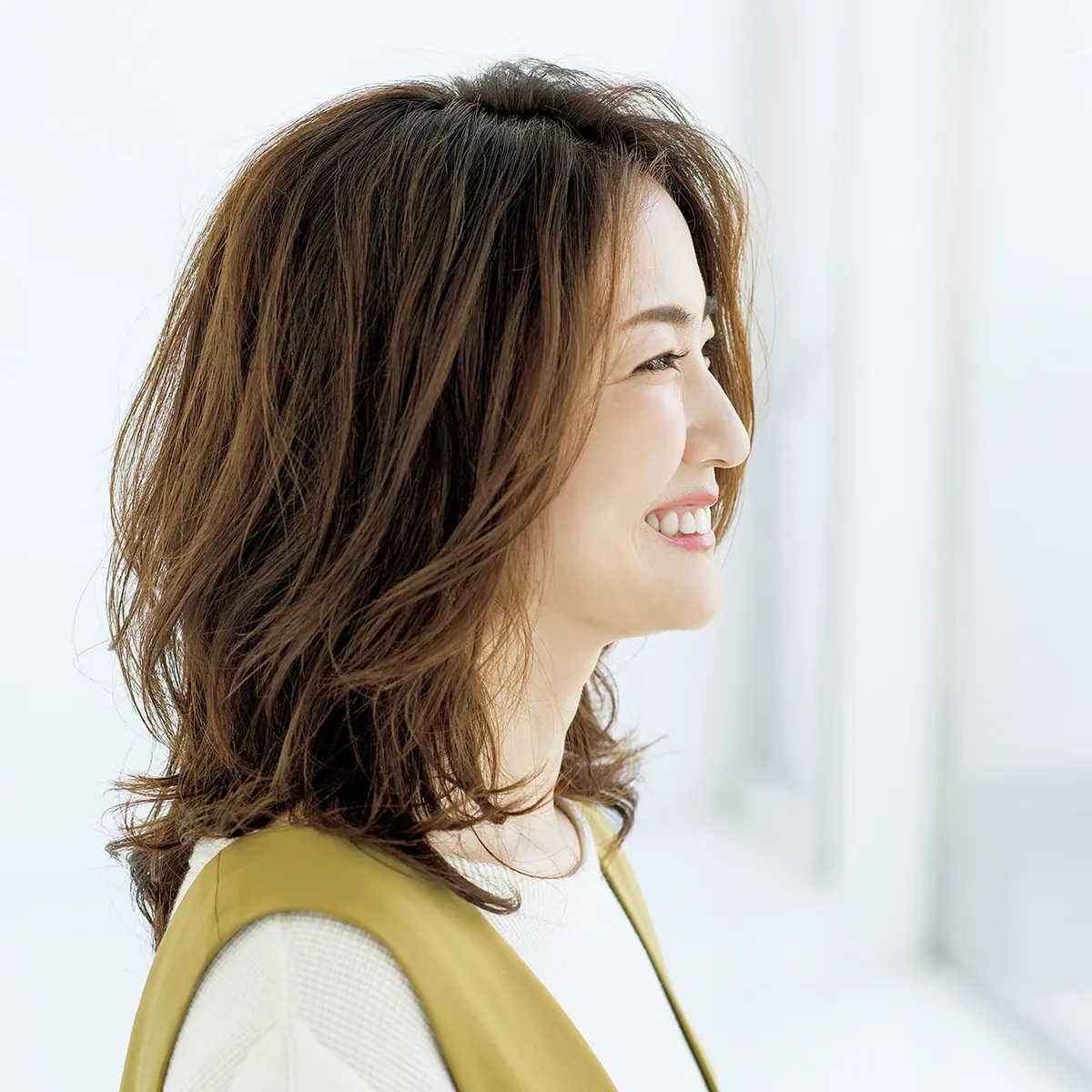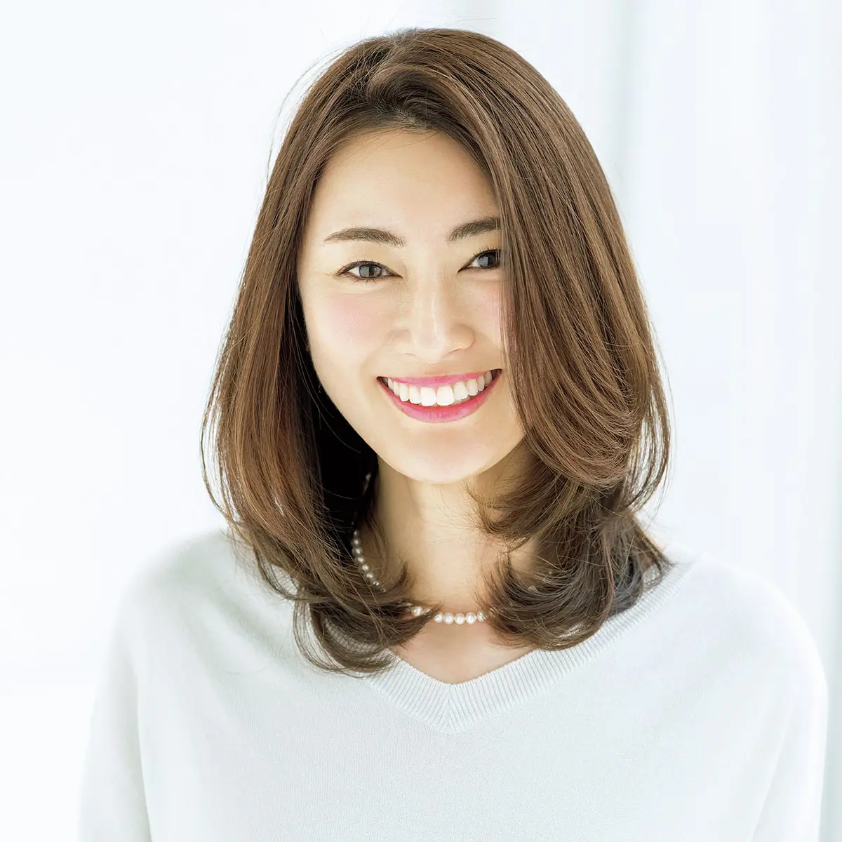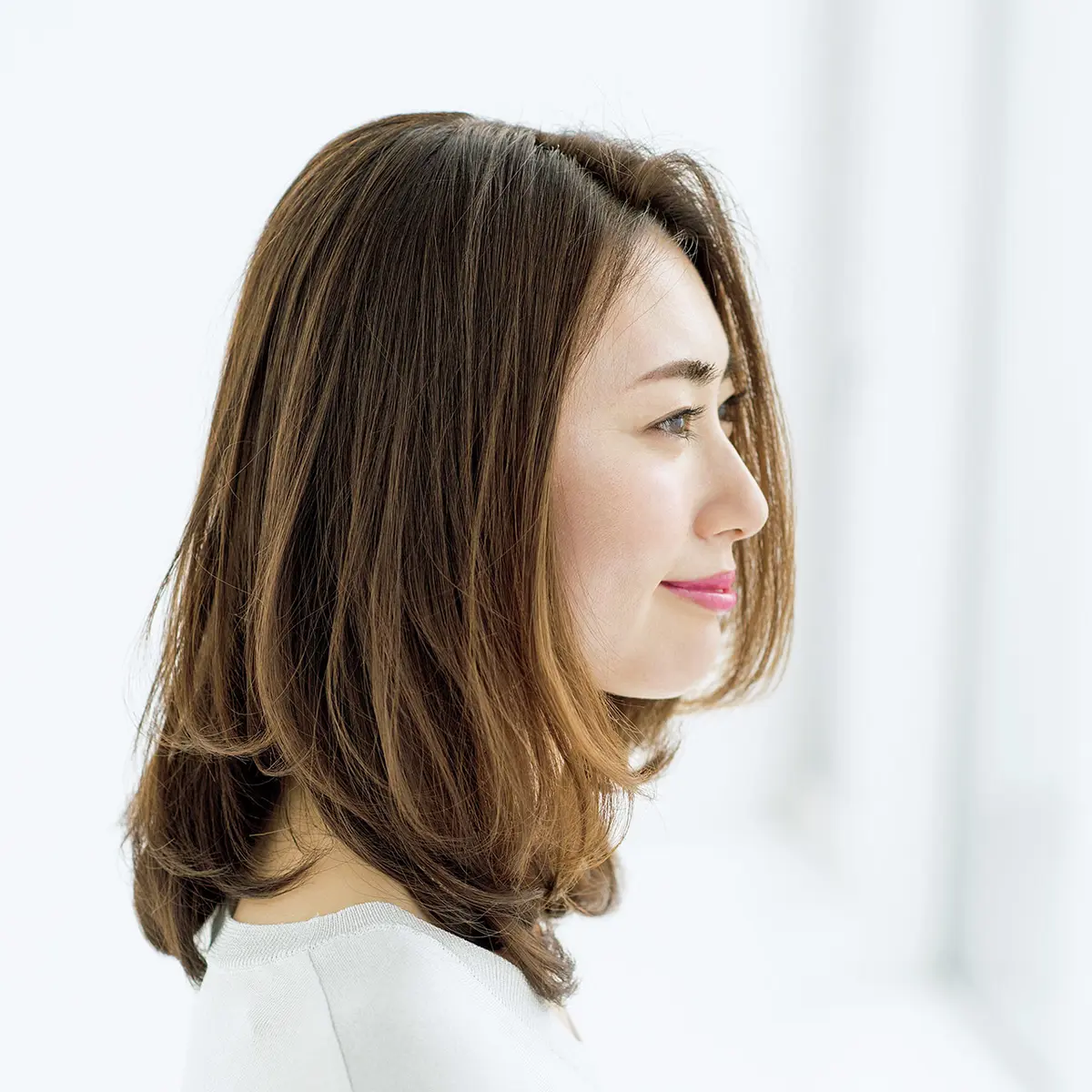 「ツヤとまとまり感が大事なローレイヤーミディアム。湿気に左右されずに、このスタイルをキープできますよ」