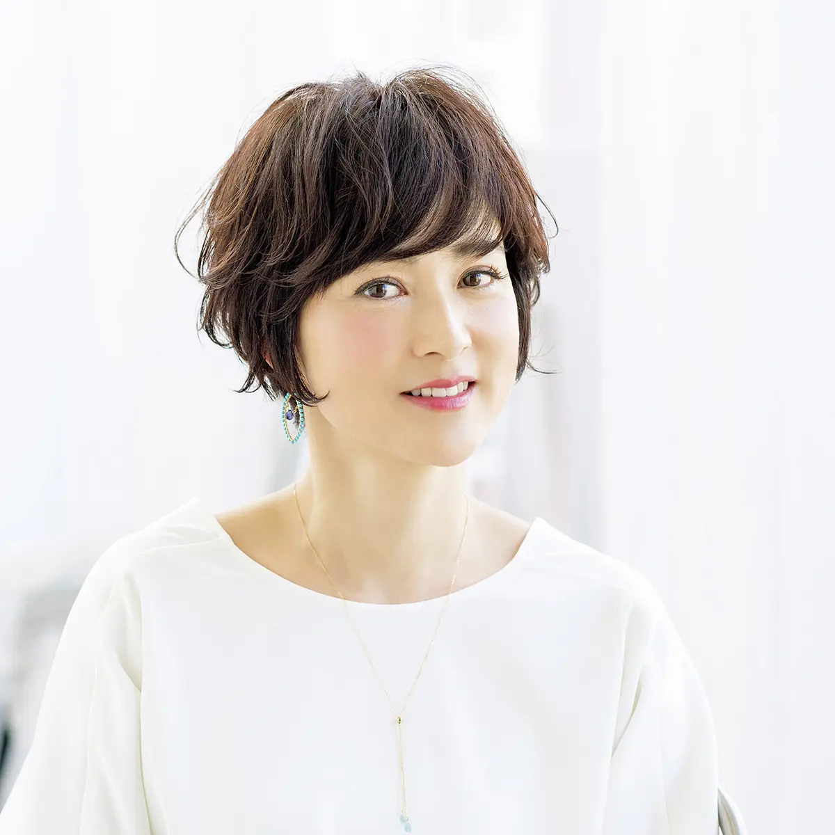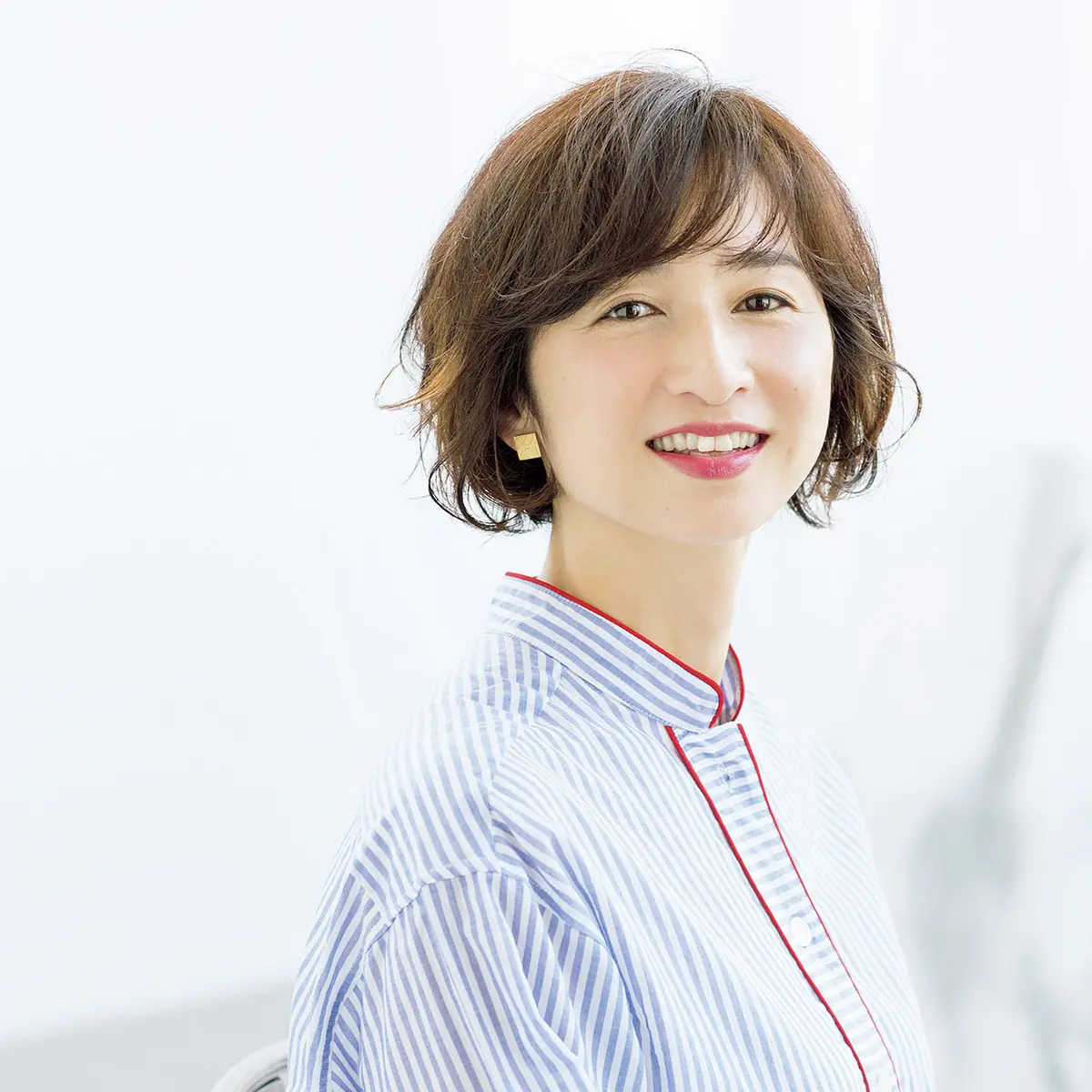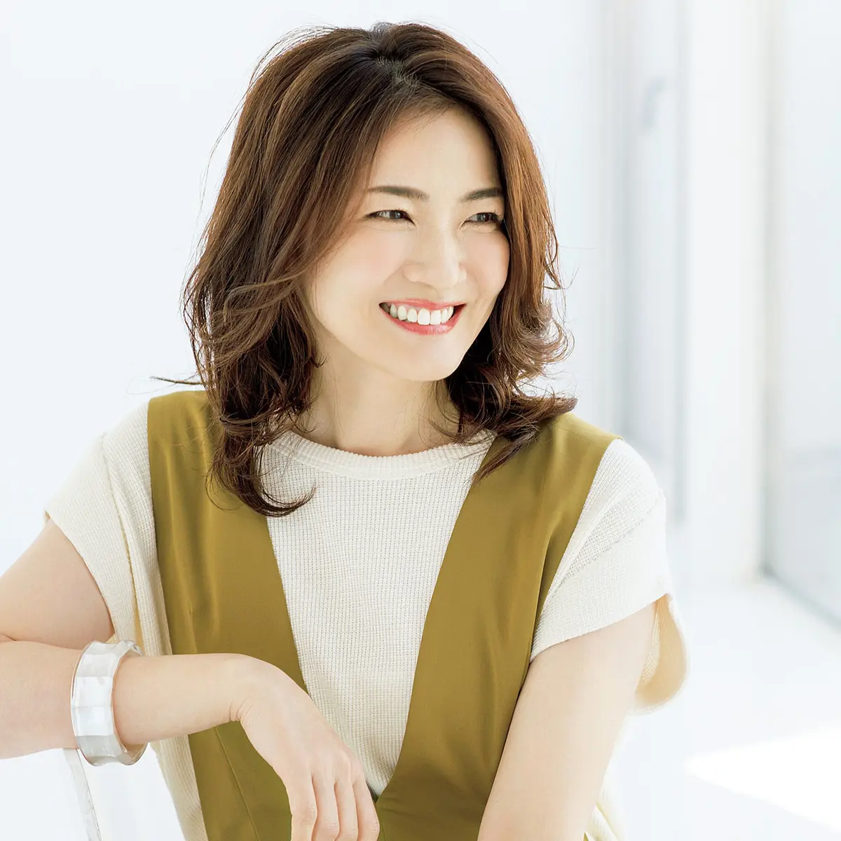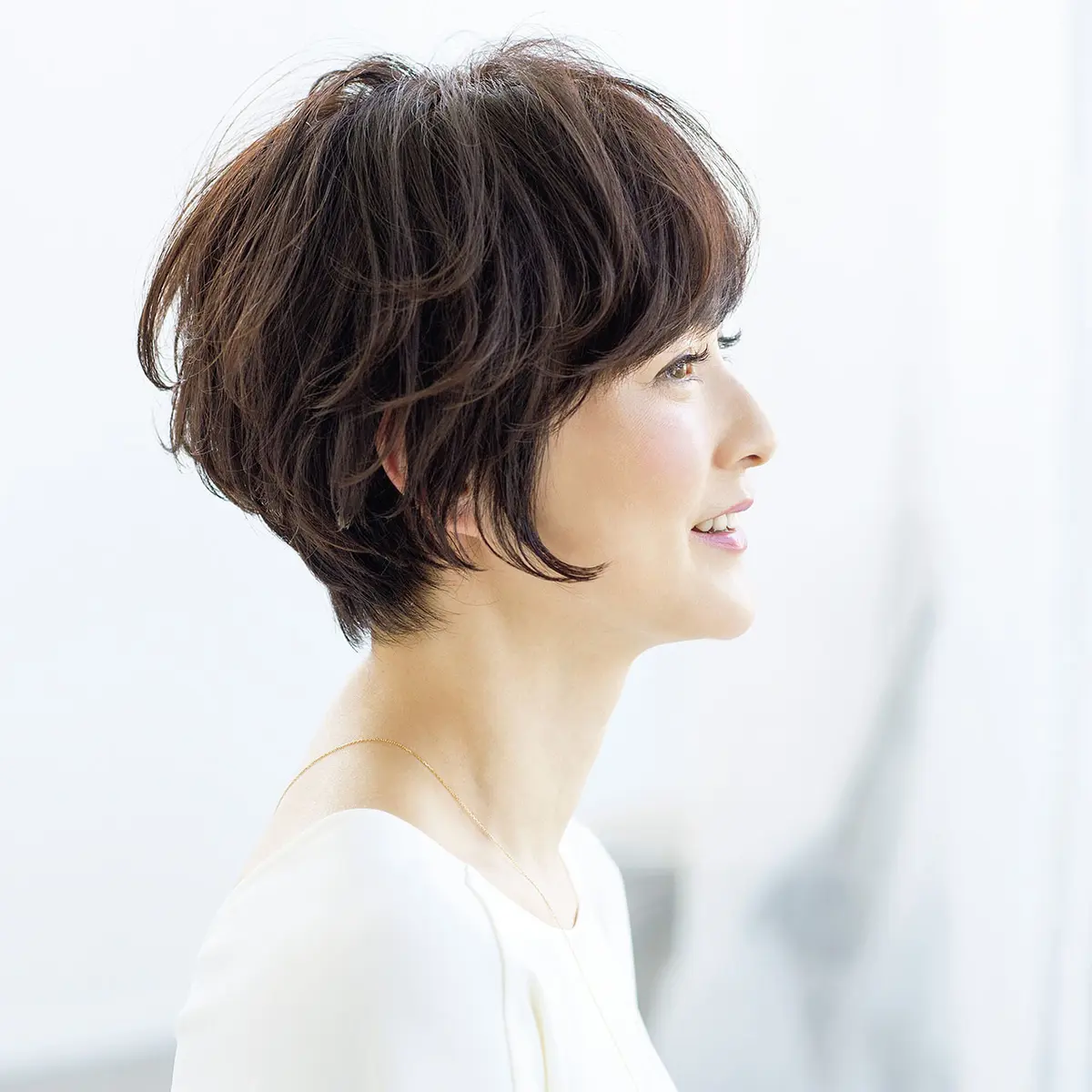 「ツヤとまとまり感が大事なローレイヤーミディアム。湿気に左右されずに、このスタイルをキープできますよ」