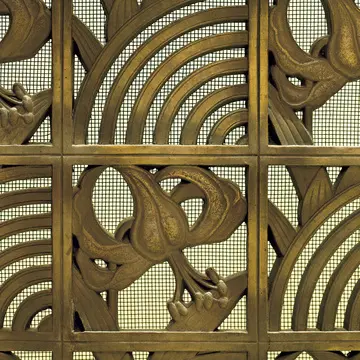 妃殿下居間の暖炉カバー。百合と同心円を市松に構成