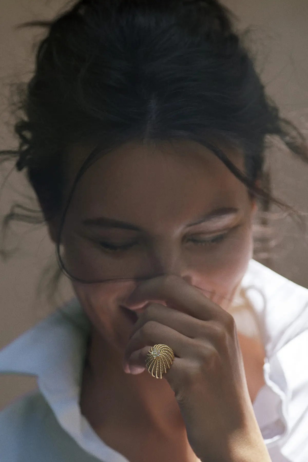 ジュエリーの若々しいつけこなしで完成する「ツヤ出しモード」