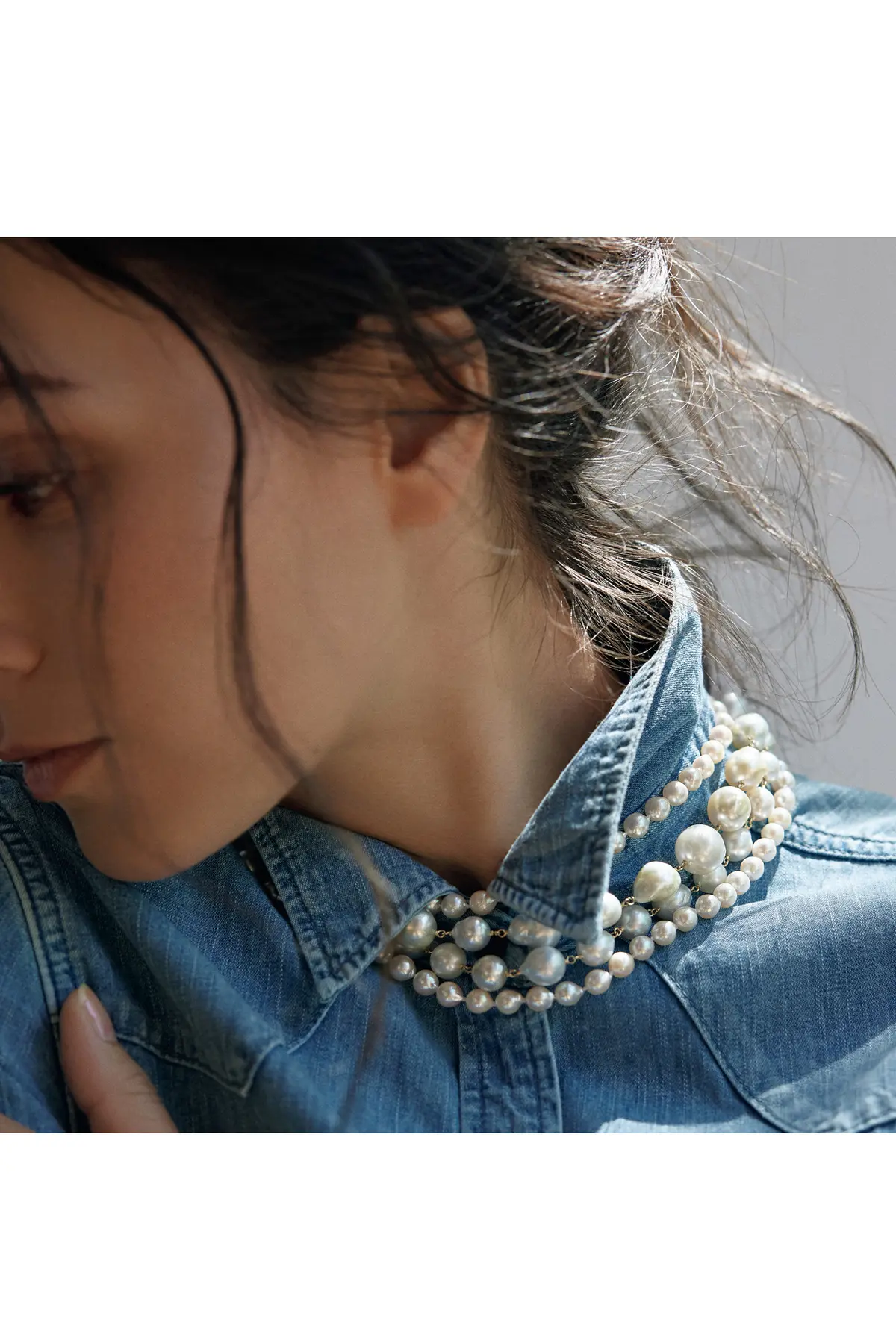 で高貴なツヤは、年齢を経た大人の肌があってこそ強調できるもの。一方、本物のジュエリーは若い人がつけても、そのよさを十二分に発揮することはなかなかむずかしいとか。「ジュエリーを楽しむのはまさに大人ならではの特権なのです。そんな大人の味方を、いざというときのためにだけとっておくのは本当にもったいない!何げない日常の装いにこそ合わせてみましょう。そこに生まれるギャップこそがツヤ感につながるのです」。ただし、気をつけてほしいポイントもいくつかあるそう。「単純に高価なジュエリーをいくつもつければいいというものではありません。やみくもにつけると、かえって老け見えにつながることも。計算しつくしたつけ方のルールを心得るのがポイントです。そこで、常々私がプライベートでも、またスタイリングのうえでも心がけている、"ツヤ感とモード感を感じさせるジュエリー使いのルール"をご紹介します。ぜひ自分のものにして、大人の特権を満喫して」。
