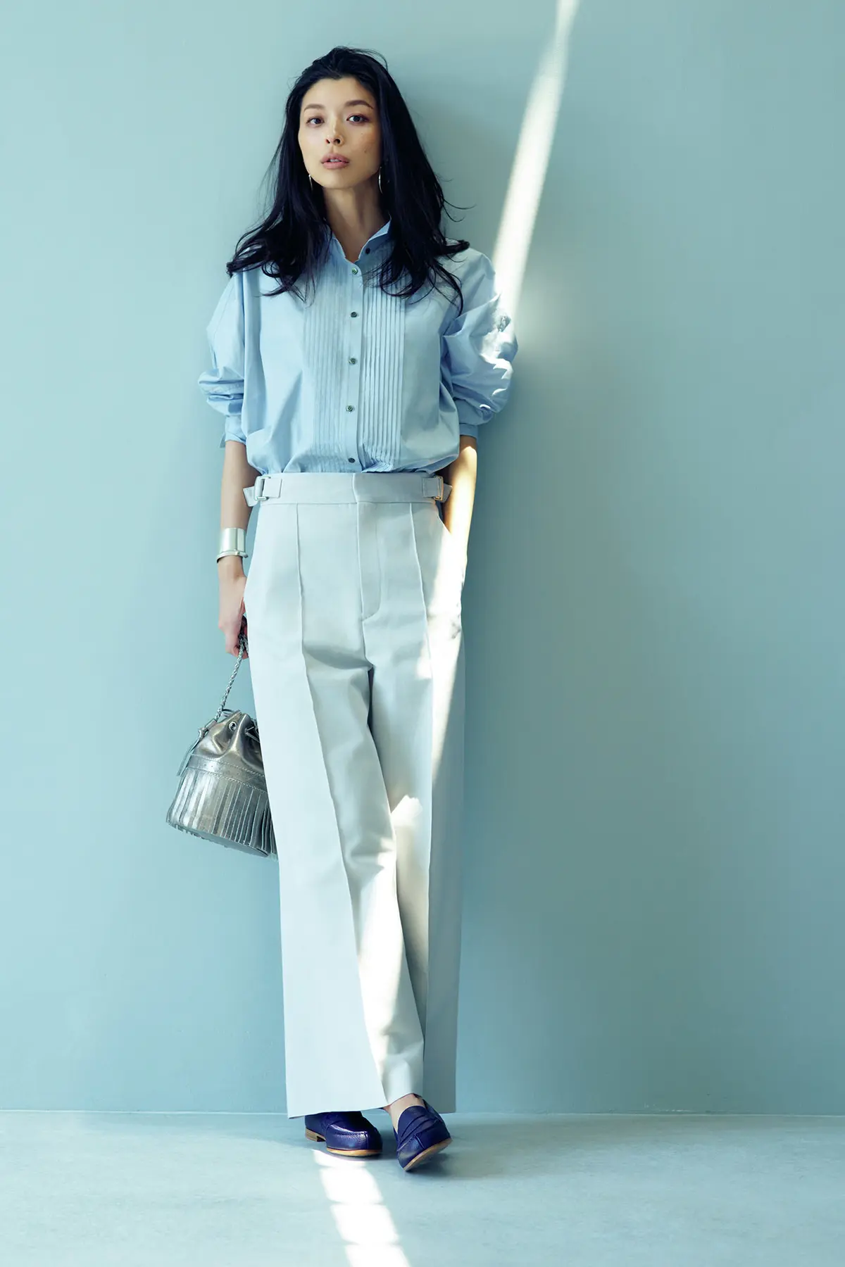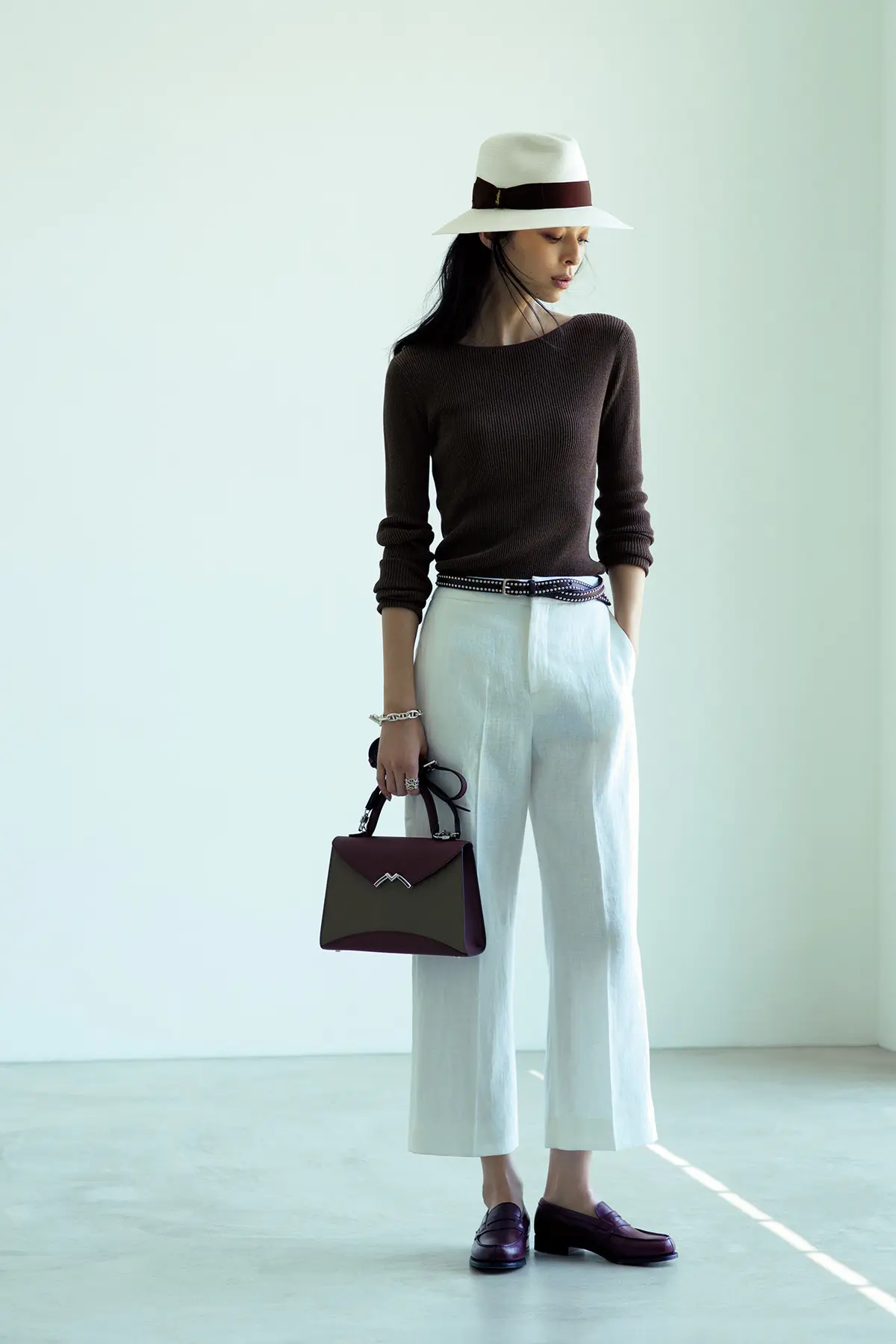 eclat8月号掲載 撮影/長山一樹(S-14) ヘア/左右田実樹 メイク/早坂香須子(W) スタイリスト/村山佳世子 モデル/生方ななえ 取材・文/向井真樹