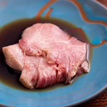 肉割烹の草分けとして知られる京都・祇園の『安参』。昭和23(1948)年の開店以来、厳選した牛肉の部位を一品で楽しませ、ここで京都の肉料理に開眼した人も少なくない。メニューは創業以来ほとんど変わらず、生と焼き、煮込みが中心。いただき方も同じで、肉の本来のうま味を味わうために、生からスタートし、味が濃い煮込みは最後と決まっている。「料理はすべて創業者の先々代が考案したもので、生の種類が少し増えたくらい。肉本来の味を楽しんでもらいたいので刺身抜きの注文はうちではありえません」と生肉に絶対の自信をもつ3代目の渋谷俊一さん。2代目に40年間仕え、スタッフとともに店の味を守り、長年通う常連もその目利きと腕に一目を置く。