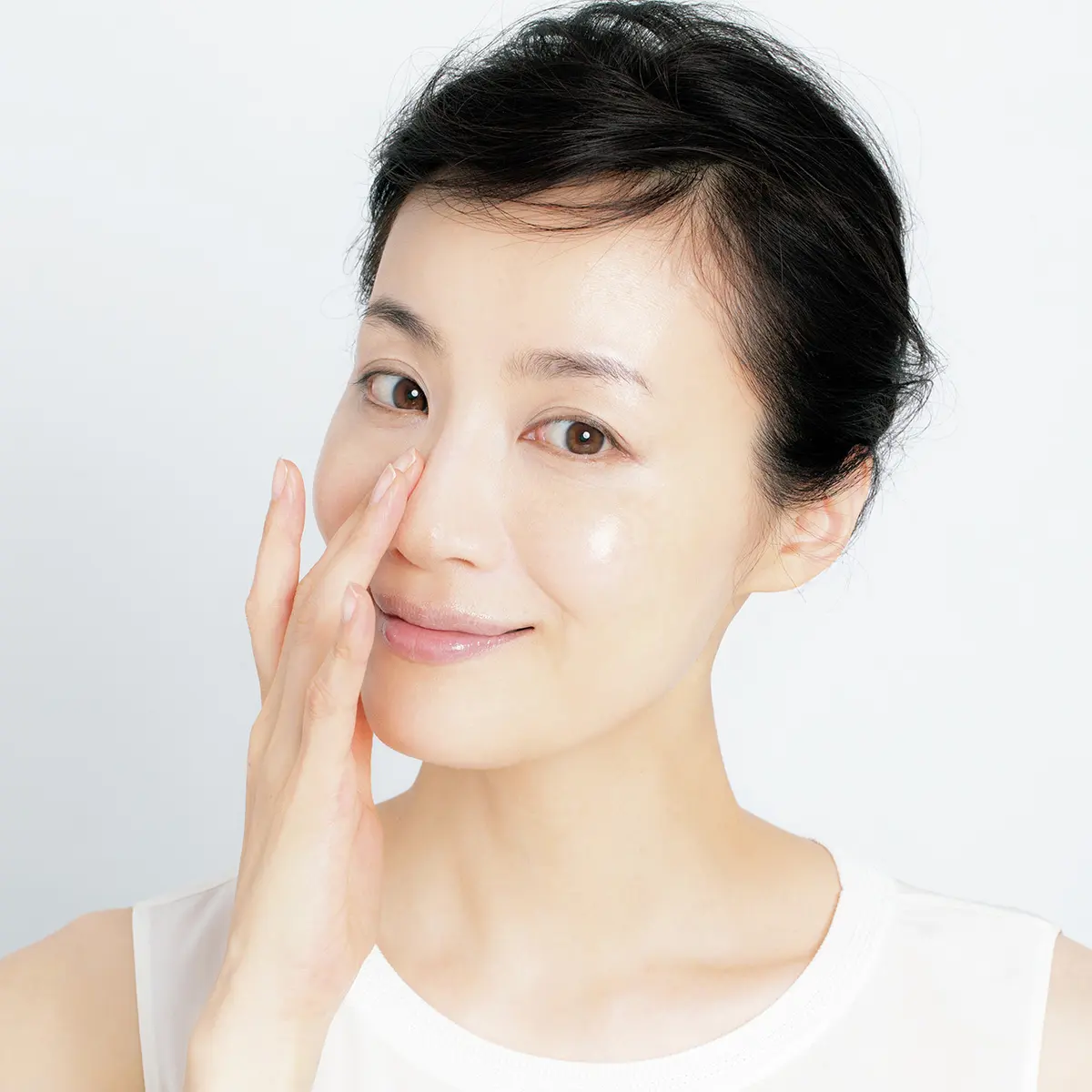 額、鼻、両頰、あご。昔から、乳液やクリームをつい"5点"に置いてからのばしてしまうという習慣は「いらない」美容法。「この方法だと、本来油分を控えめにしたいTゾーンや顔の中心にボテッとついてしまいます。スキンケアは一度手のひらにとり、軽くのばしてから肌へ。その際、乾燥しやすい肌のUゾーン、Tゾーンの順に軽く押さえるようにしてのせます。Tゾーンには、手に余った分を軽くのせるくらいで十分」。