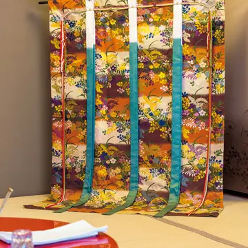 季節を感じさせる 雅な几帳や生け花も